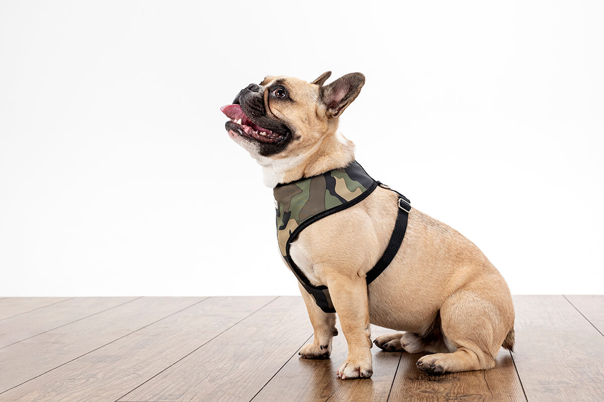 Harness is made of Softshell material that breathes well, is high performance and long lasting. It will make sure the walk for your pup is safe and comfortable. Made with Frenchies in mind but suitable for all small breed dogs.