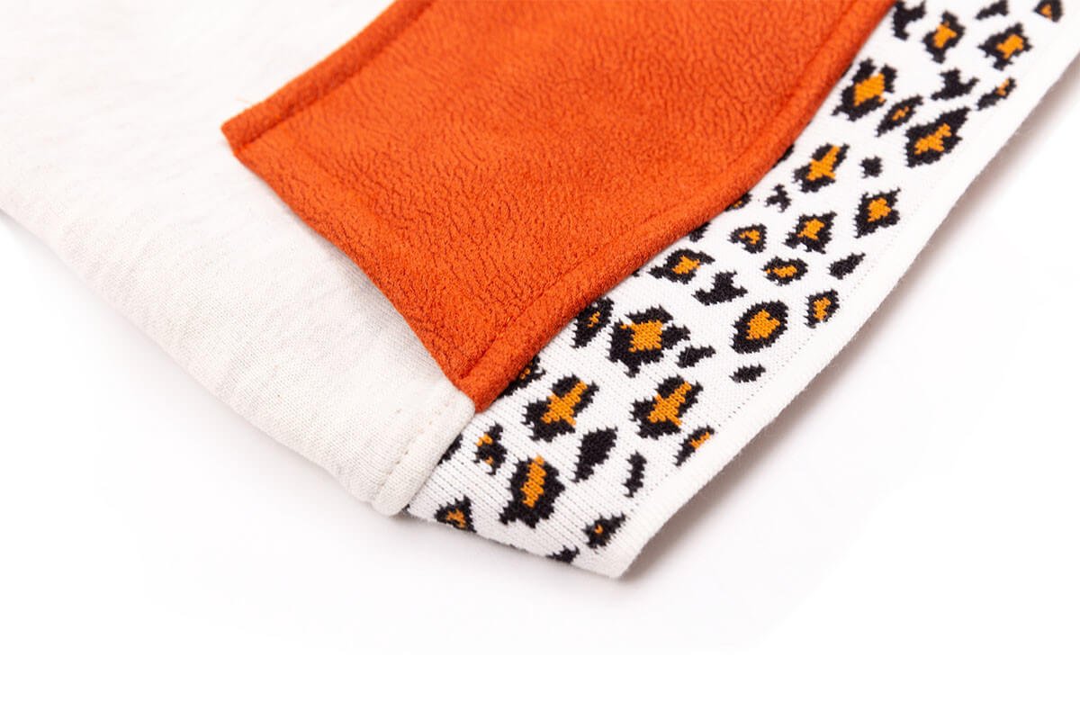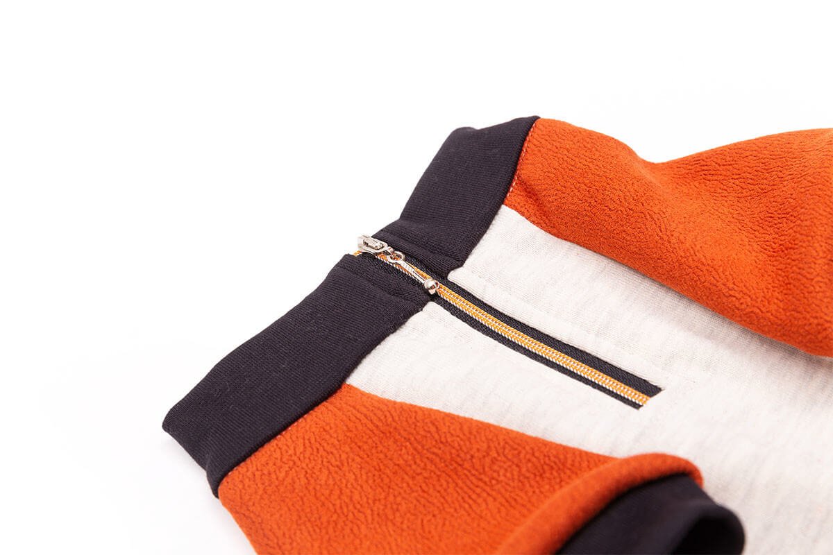 Oblačilo je zahvaljujoč udobnemu kroju primerno za sproščeno nošenje tako znotraj kot zunaj doma. Na prsni strani pri vratu se zapenja z zadrgo, na hrbtni strani ima žep, ovratnik in rokavi pa so obrobljeni s patentom.