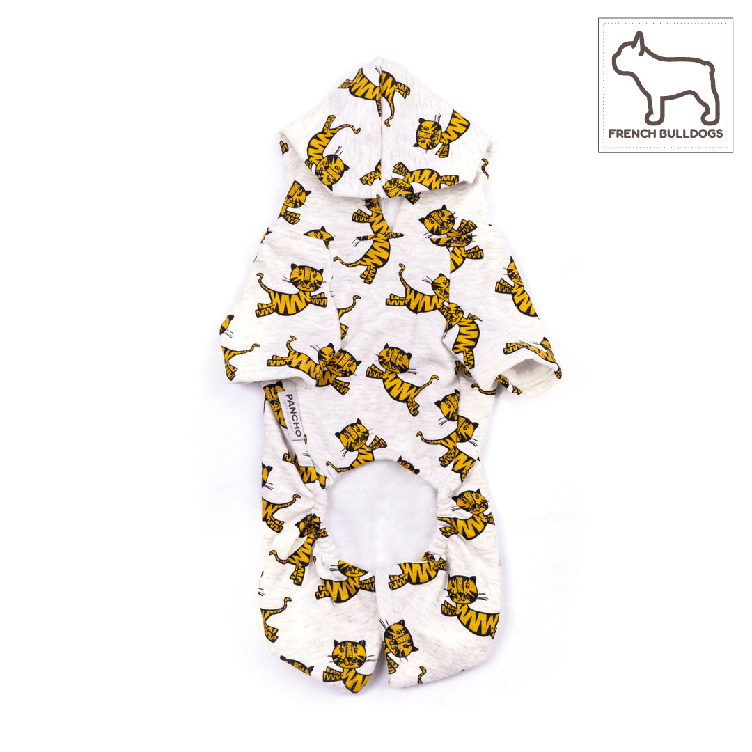 Oblačilo z živalskim motivom je zahvaljujoč udobnemu kroju primerno za sproščeno nošenje tako znotraj kot zunaj doma. S fiksno kapuco omogoča celovito pokritost in zaščito telesa pred zunanjimi vplivi.